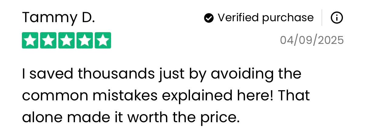 “I saved thousands just by avoiding the mistakes explained here. That alone made it worth the price.” – Tammy D.